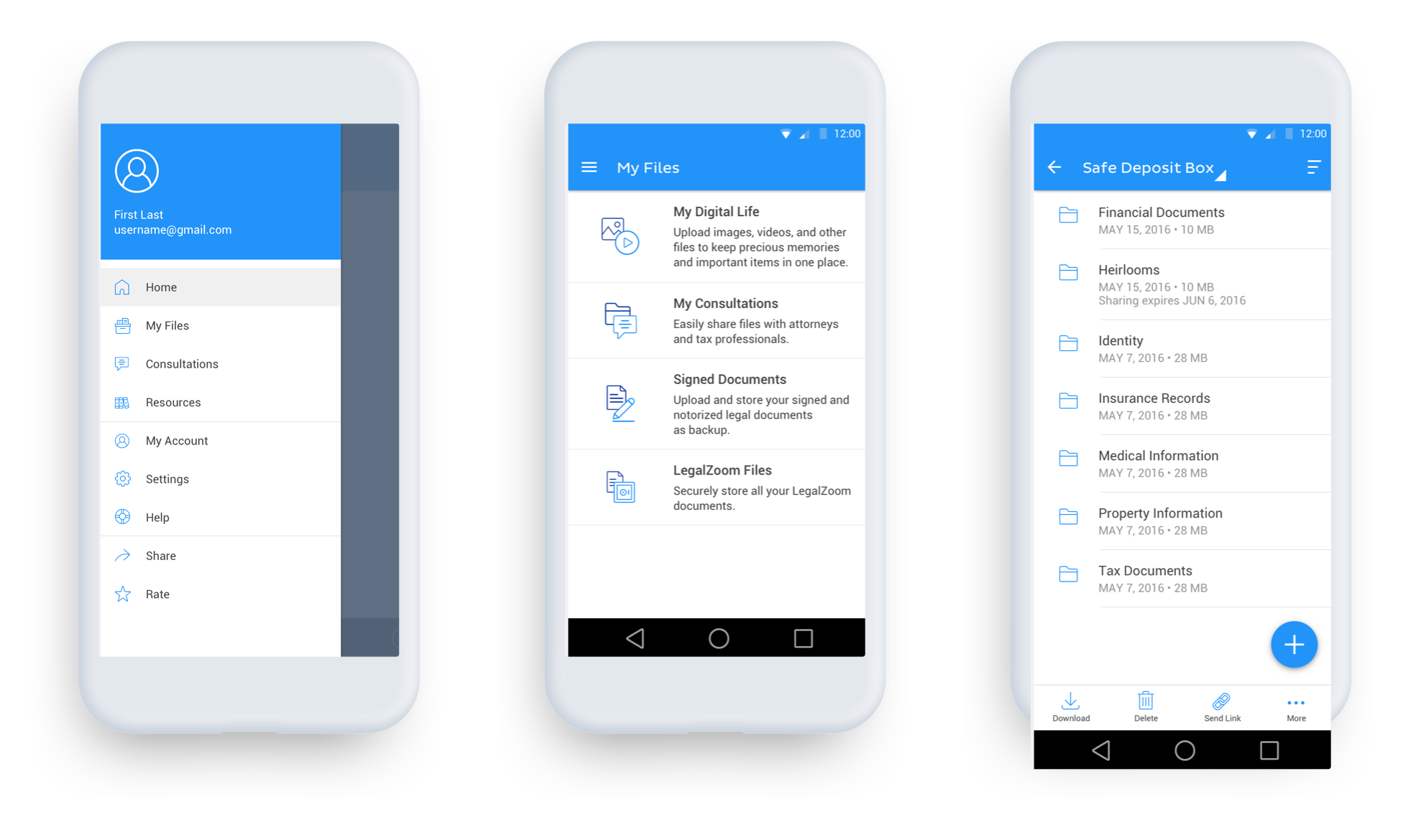 UX and UI • iOS & Android • 2016LegalZoom Estate Planning is a companion app for customers to maintain, make edits, and give family members access to their digital estate planning documents . The app also allows customers to schedule a consultation with an attorney or tax advisor. I collaborated with a team that consists of a Product Manager, a UX designer, and Mobile Engineers to create the end-to-end user interface design.